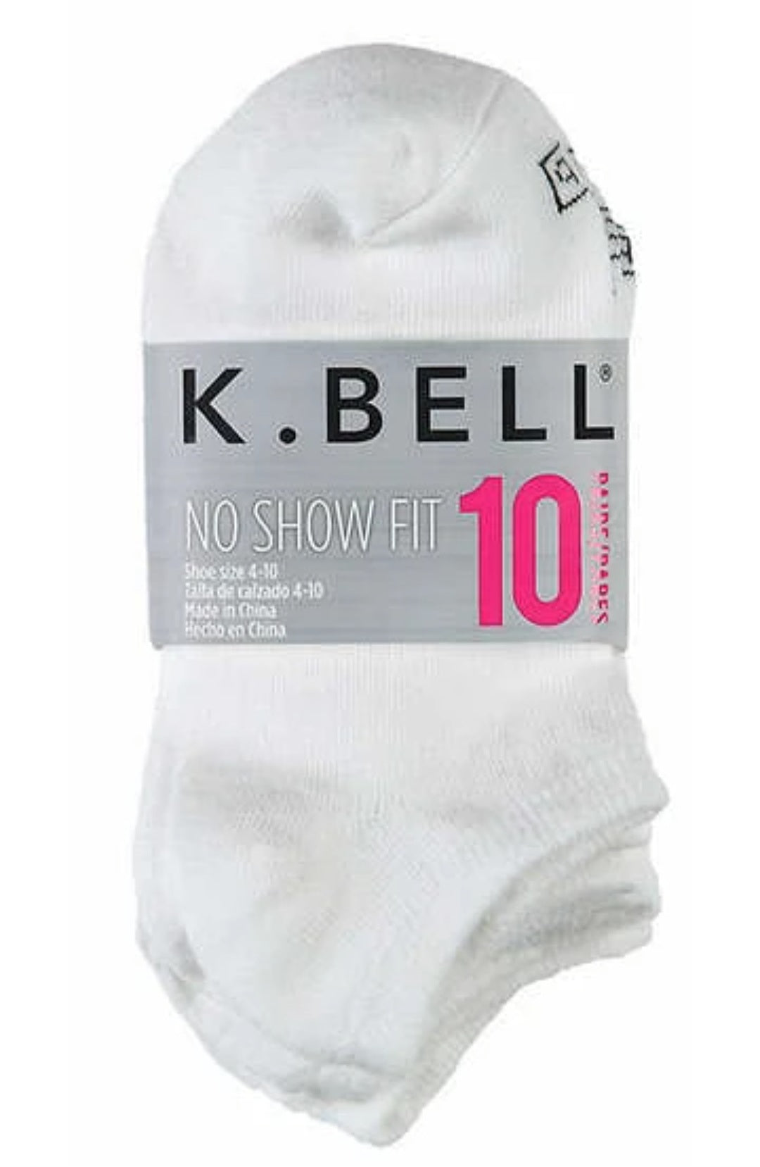 K. Bell Ladies' No Show Sock, 10-pair, White