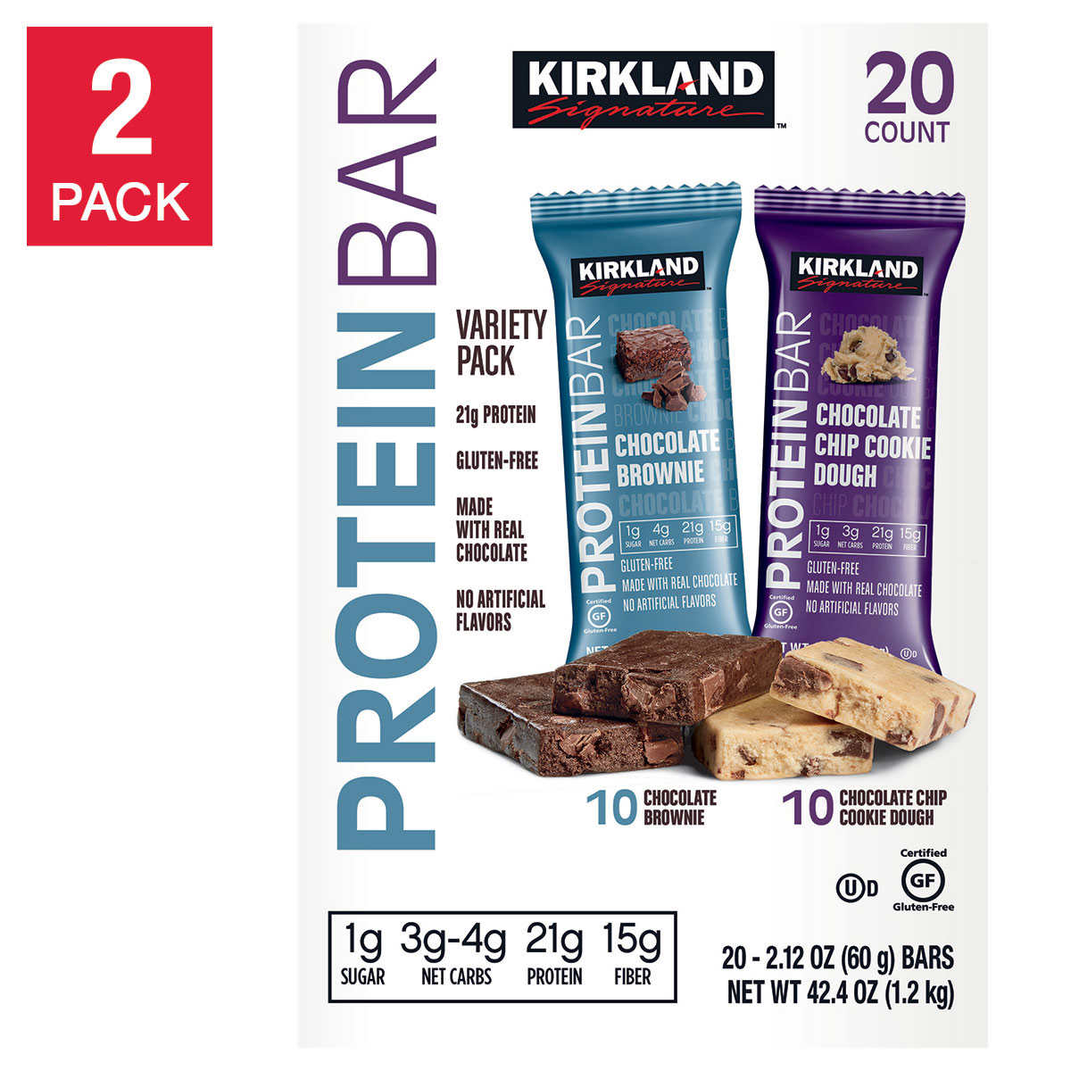 Kirkland Signature Protein Bars Cookie Dough and Chocolate Brownie 20 pack, 2-count