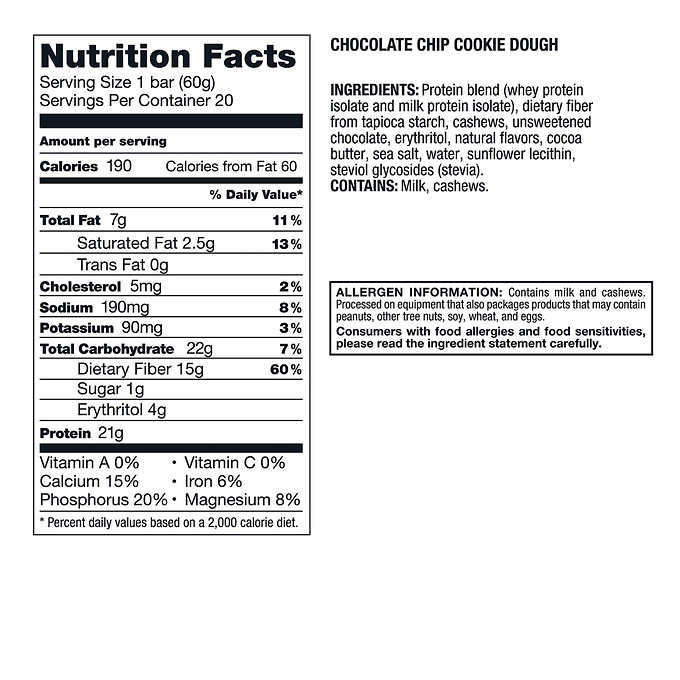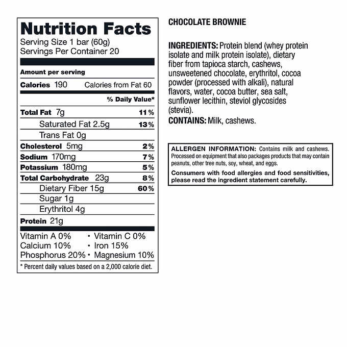 Made with 100% Protein Isolate and fortified with high fiber and only 1 gram of sugar, this variety of Chocolate Brownie and Chocolate Chip Cookie Dough protein bars guarantee delicious and healthy snacking choices for any taste. As excellent sources of protein and fiber with low net carbs, both bars can be enjoyed guilt free any time of the day. Real chocolate as a featured ingredient also enhances the tasting experience of each protein bar. They are winning combinations of function and flavor that are sure to satisfy.