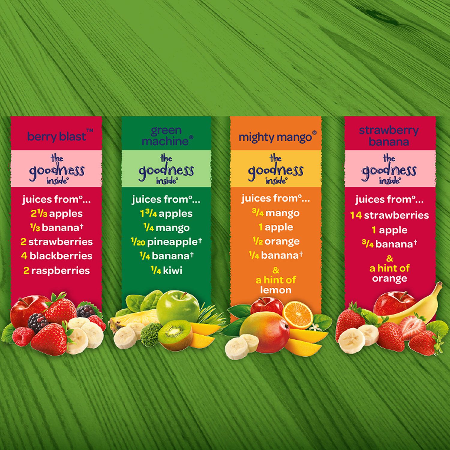 - 3 of each flavor: Berry Blast, Green Machine, Mighty Mango, Strawberry Banana
