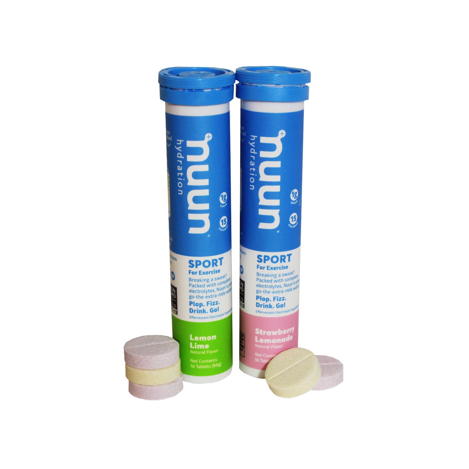Breaking a sweat or on the go? Grab some Nuun Sport! When you sweat, your body loses vital minerals and electrolytes that need to be replaced for a healthy recovery and lasting performance. Nuun Sport provides the optimal balance of clean ingredients for mineral replenishment and hydration before, during, and after your workout. This 2-pack of Lemon Lime and Strawberry Lemonade electrolyte supplements has a tasty and hydrating blend of electrolytes and minerals designed to help you stay hydrated without all the sugar and additives of other sports drinks. Carry Nuun tablets in your gym bag, backpack, or purse and pop one into your water bottle next time you're getting ready to break a sweat. Just plop, fizz, drink, and go!