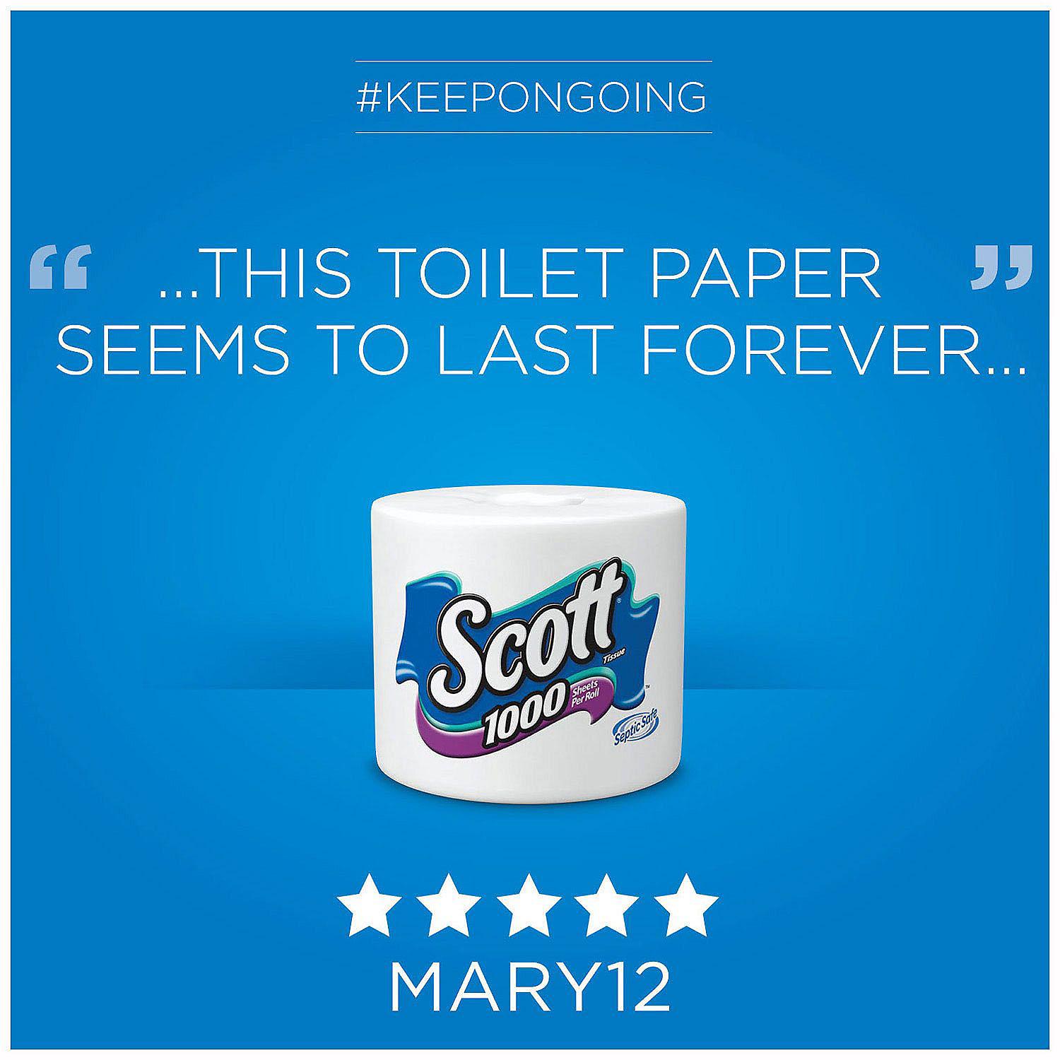 Scott 1100 Unscented Bath Tissue Bonus Pack, 1-ply (36 Rolls = 1100 Sheets Per Roll)- Individually Wrapped Toilet Paper